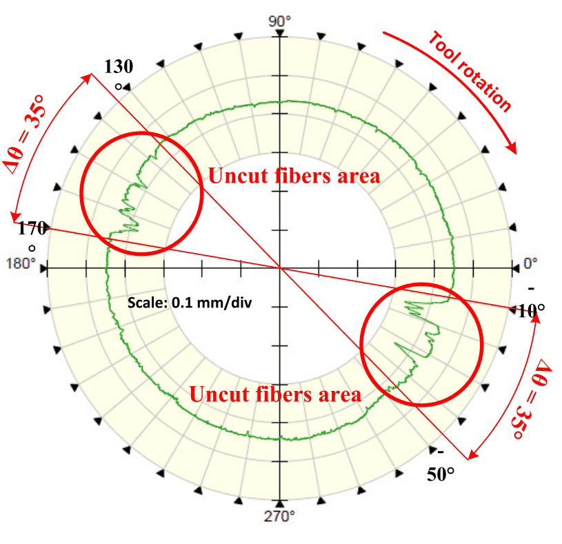 In conclusion, wear has a direct impact on the final surface topography of the hole. The measure of the uncut fiber area ratio can be a valuable criterion to define the surface roughness of the hole.