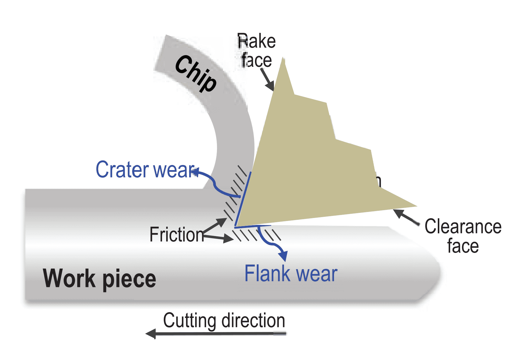 Figure below show the mechanism for friction and tool wear.13